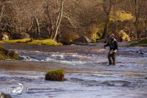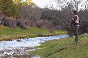 Un año más, nos pueden las ganas de salir a pescar unas truchas aunque la temporada todavía no esté comenzada oficialmente. Eso es lo bueno de los intensivos, que como este, nos aguarda en cualquier época del año. En los días previos, habíamos comentado sobre el tiempo, algo que siempre nos cuestionamos a la hora de emprender la aventura. En este caso el fin de semana en general prometía ser bueno, aunque algo de viento se había levantado a primera hora. Pero gracias al valle que traza el propio río pudimos estar bastante resguardados.