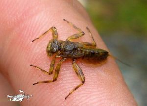 de plecópteros y stonefly como la que sostiene Miguel en la foto, aunque tenemos dudas de si no se trata de un Heptagénidos Epeorus por el aspecto. Sea como fuere, quizás la elección de imitaciones de stonefly y ninfas de dánica tuvieron su lógica.
