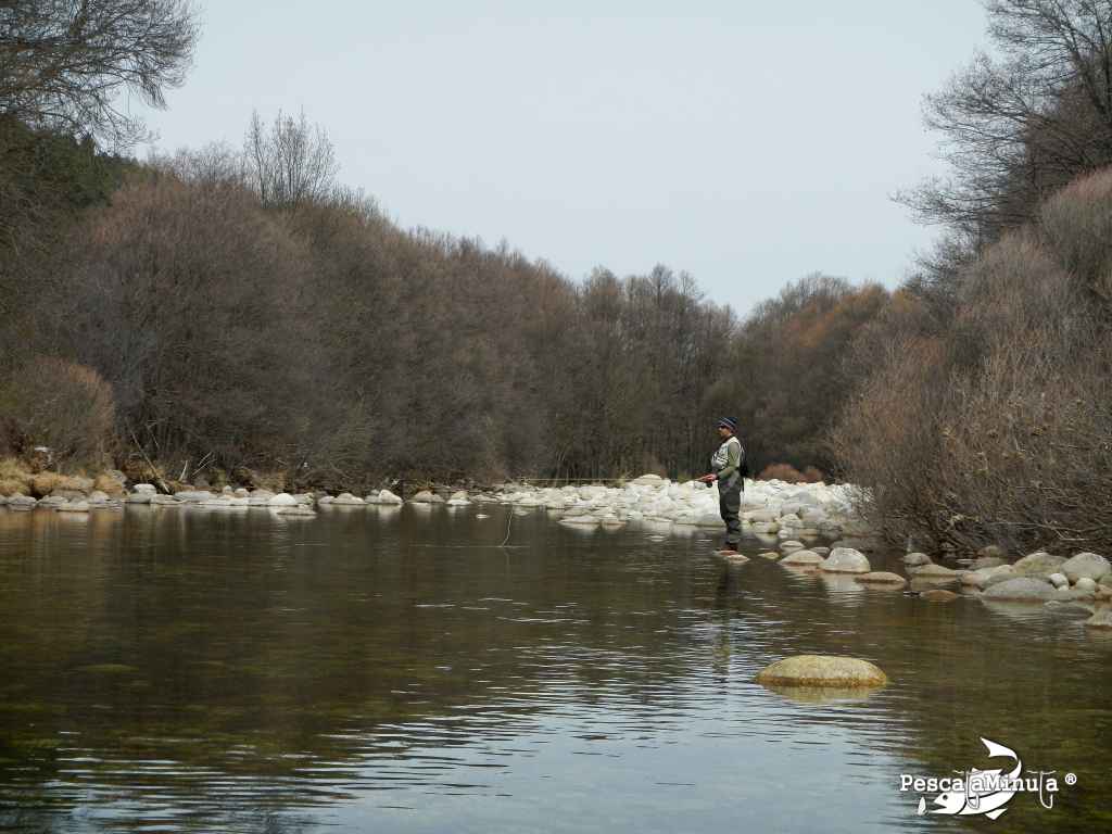 El día va transcurriendo y el rio no nos lo pone fácil, seguimos sin ver eclosiones ni vemos más truchas, así que decidimos poner fin a nuestra jornada. A nuestro regreso volvemos a ver un conjunto de truchas en los mismos claros, en este caso estamos en la orilla contraria, en la cual se hace difícil estirar nuestro bajo. No obsta