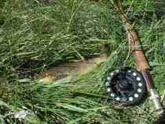 Transcurren las dos primeras horas sin éxito en cuanto a capturas, aunque Miguel ha conseguido pincha un par de ejemplares con ninfa. Es el momento de hacer un receso y descansar, ya que la mañana veraniega está siendo sofocante y sólo son las 11:00h. Minutos antes, Miguel presencia una escena