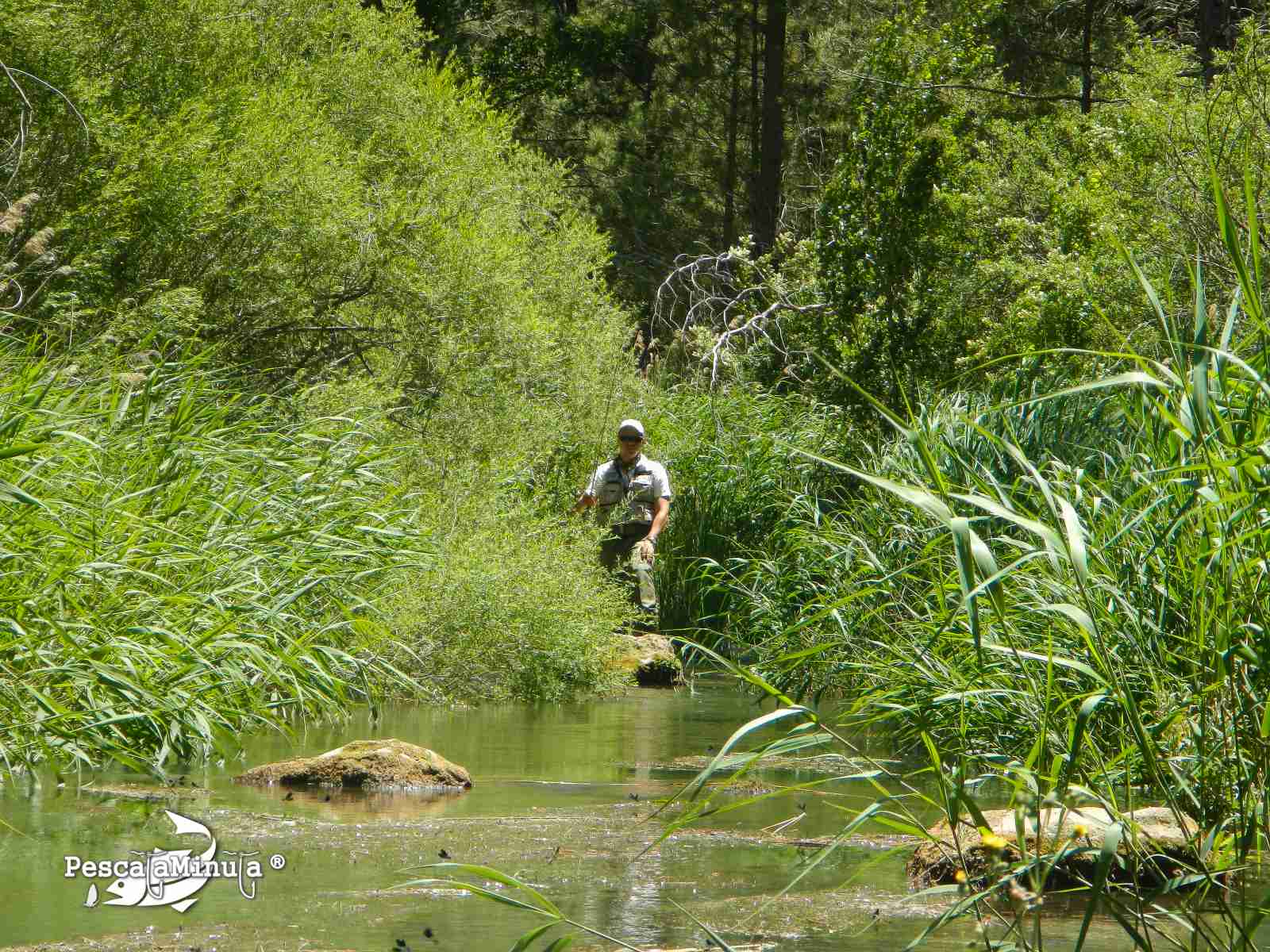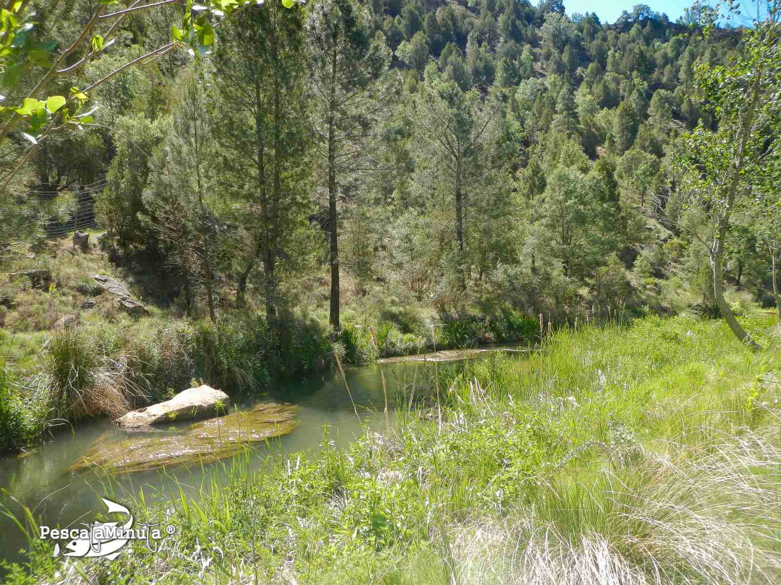 Nos encontramos un acotado bajo de agua y aunque esta temporada está siendo la tónica general en los distintos escenarios que hemos visitado, hay agua suficiente para pescarlo en casi todo su recorrido.