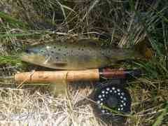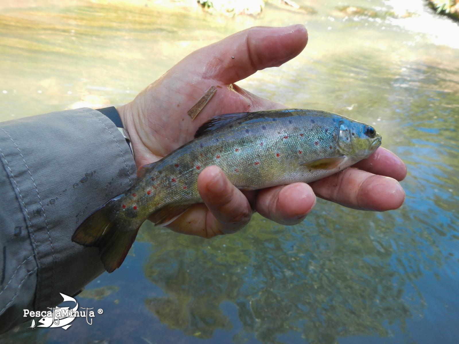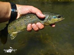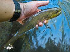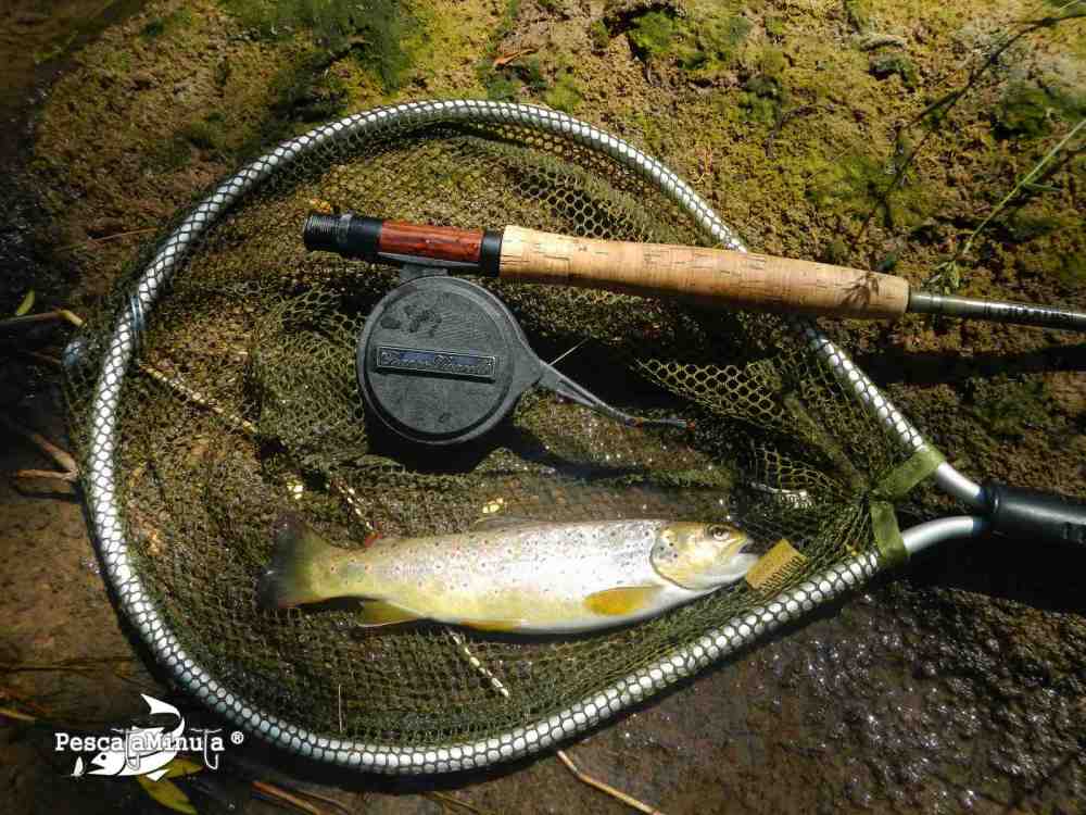 En otra poza con aguas más tomadas y algo más profundas otra buena trucha no se resiste a la ninfa y la consigo capturar, con cierta fortuna,