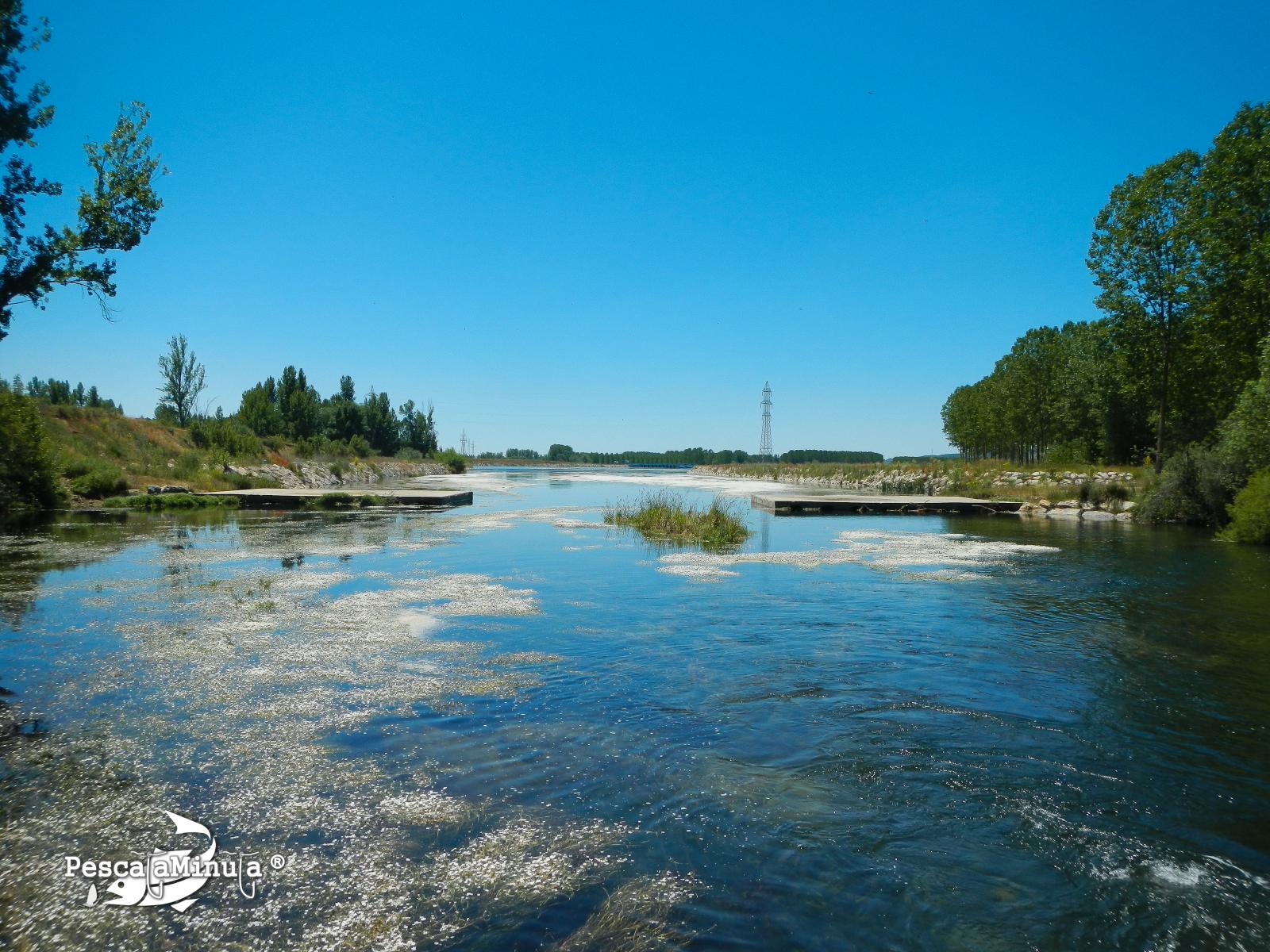 A partir de ahí desde otros pilares parecidos al puerto de las monjas, el río vuelve a recobrar su aspecto tradicional, donde sus aguas se entremezclan con abundantes ocas en flor y orillas arboladas que dan cobijo a los peces. Son precisamente éstas orillas las que más actividad están presentando, que sin ser muy continua, se observan cebadas de vez en cuando.
