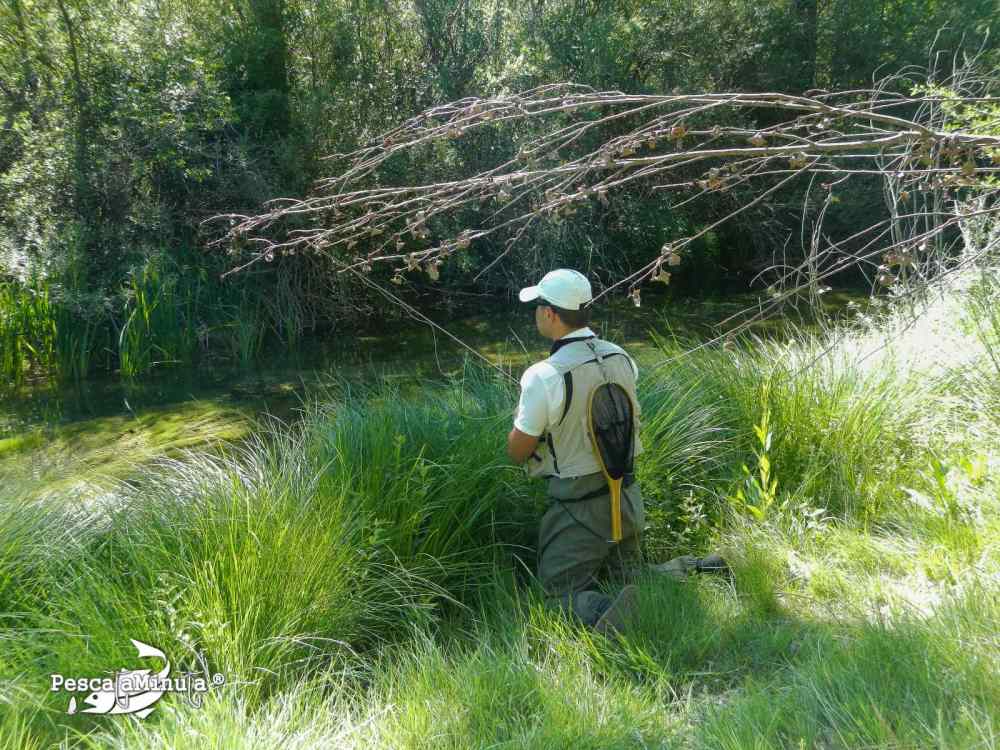 artes de un pescador. El segundo paso es realizar un lance medianamente largo sin asustar con tus aspavientos a la trucha y claro, sin enredar el bajo en la vegetación de la vereda. Si has conseguido realizar estos dos