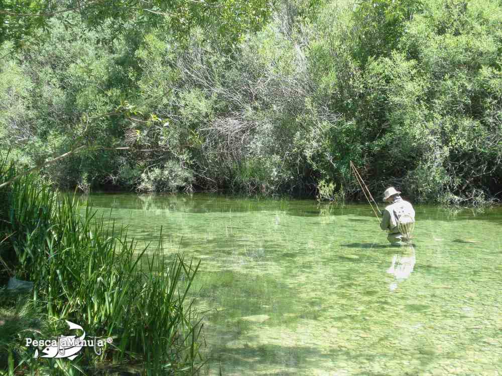Quizá por esta transparencia de sus aguas o por su propia genética, las pintonas se muestran especialmente asustadizas, la aproximación al punto de lanzado se hace más propia de una maniobra militar que de las