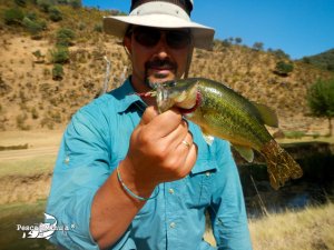 En los primeros lances Iván consigue capturar un bass pequeño que no se resistió a la imitación de alburnos, que allí además abundan. Y durante las dos primeras horas otras 3 capturas más se suceden entre