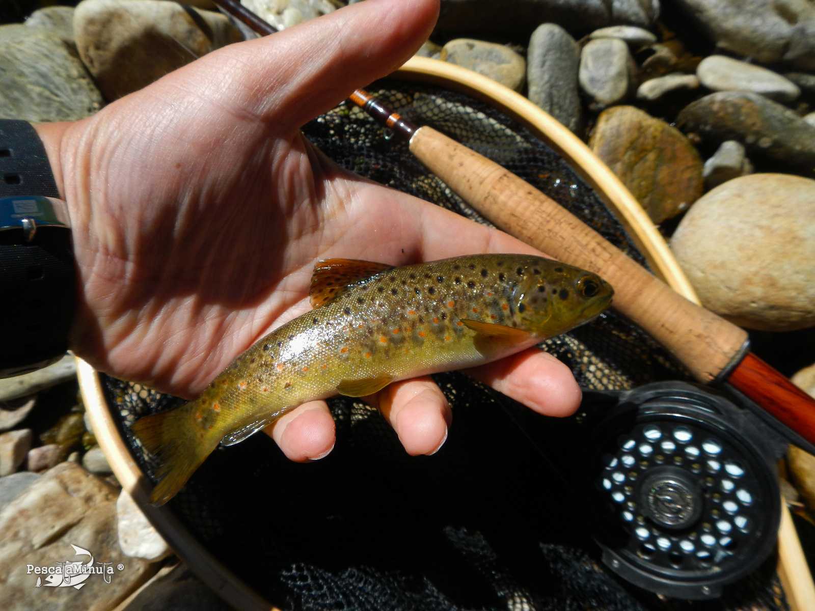 Muchas capturas, siendo todas más bien pequeñas, muy activas sobre todo a partir de las 11:30h acompasadas con distintas eclosiones de pardones, rhodanis y tricos. La mañana avanzó con mucha tranquilidad, deteniéndome