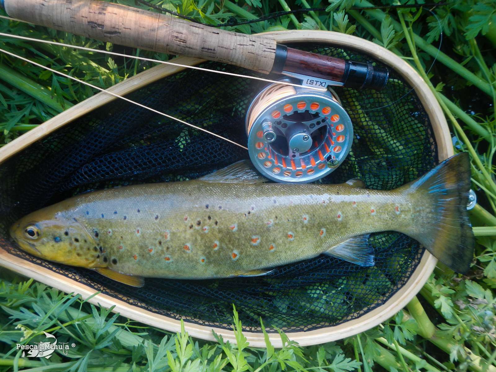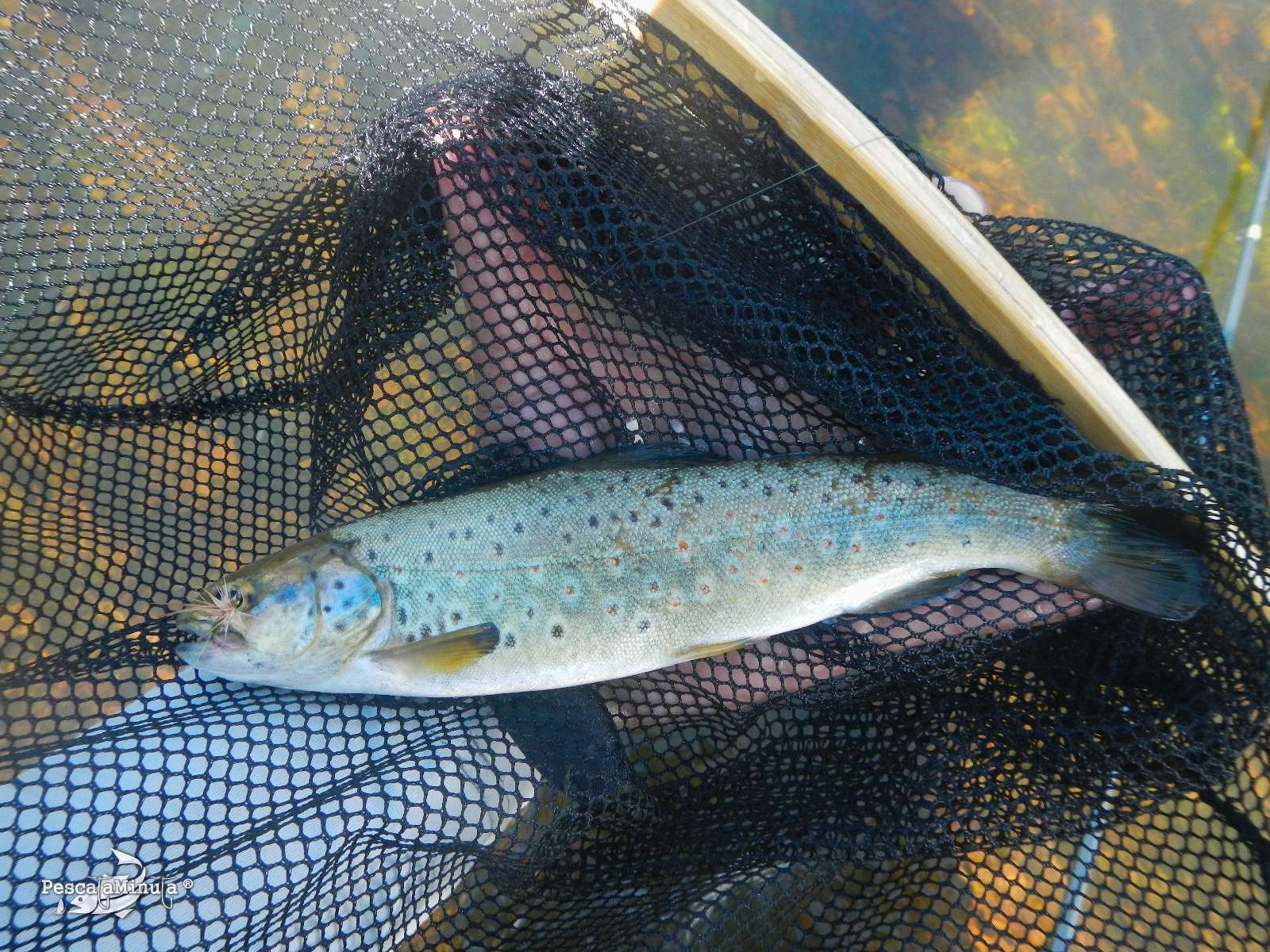 Para cuando lo conseguí por primera vez, me di cuenta de la medida real de la trucha, ¡no cabía en la sacadera! y en un coletazo el animal se salió, estaría más cerca de los 70 que de los 60cm. De nuevo la pelea, carrera para arriba, para abajo… Parecía que ya empezaba a ceder, pero tenía que hacer una maniobra rápida para meterla por la cabeza y en vertical o de lo contrario no la lograría cobrar. Tenía parte del bajo enredado en una aleta y venía de lado, fue en el momento de intentar meterla en la sacadera cuando se volvió a girar consiguiendo en el último tirón deshacer el nudo de la mosca que se llevó prendida en el labio superior. ¡Buahhh! No podía ser, la había tenido dos veces a punto y se me escapó.