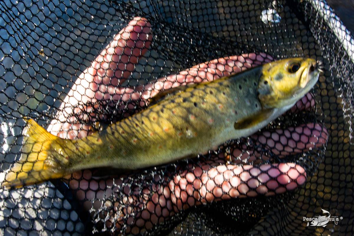A partir de las 17:00h de nuevo en el río, tras haberme echado una merecida siesta para compensar el madrugón. Remontando el río en busca de nuevas posturas que albergaran más peces. Llego a una tabla con variedad de zonas profundas y someras, donde hay abundancia de ocas en el fondo, donde se pueden esconder las truchas. Tras varios lances donde no dan señales, a 10 metros de mi posición presencio la primera cebada y seguido a esta y durante la próxima media hora otras tantas se van alternando. Aprovecho ese momento y consigo clavar otras dos truchas más, también en esta ocasión son pequeñas.
