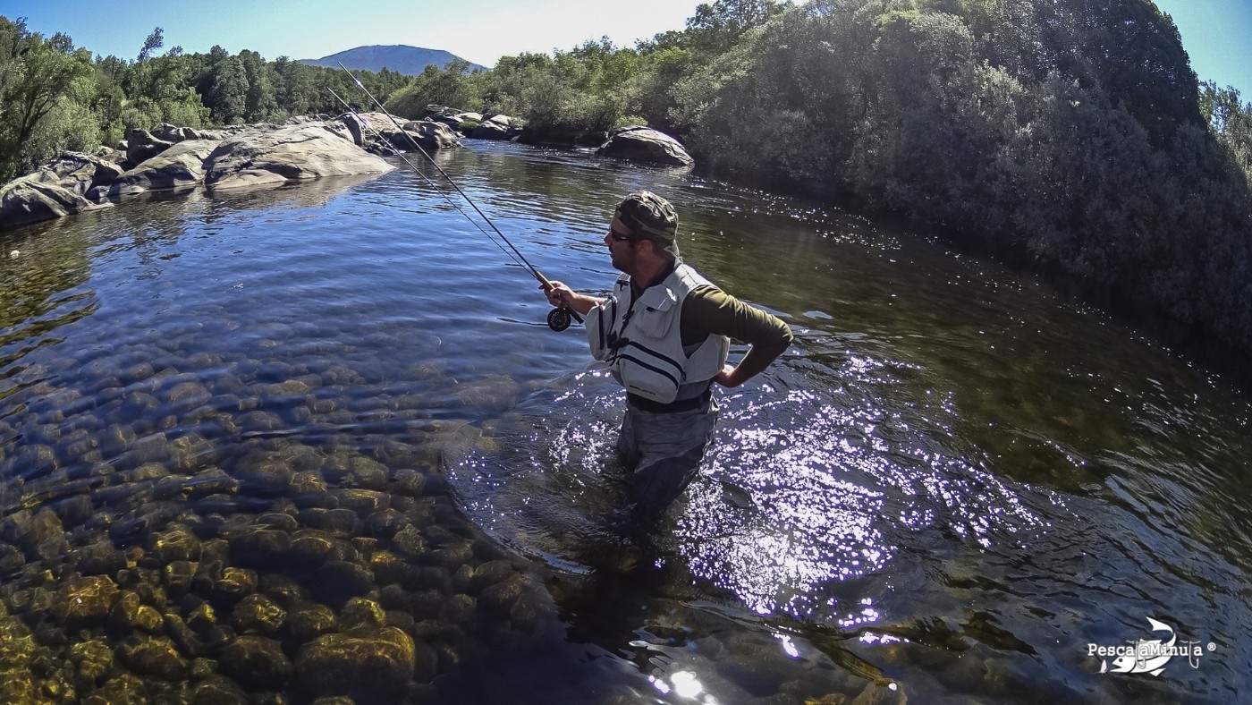 Me había quedado rezagado con estas capturas y Miguel y Santi andaban río arriba muy alejados sin poder verlos. Pero aunque aceleré el ritmo, no dejé por tantear tantas pozas, corrientes y tablas que me iba encontrando. En una de las tablas más someras y anchas consigo pinchar otra pequeña que no consigo capturar. Poco después de forma casi seguida clavo dos bogas más.