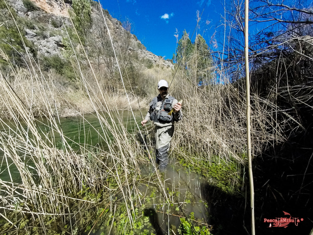 La idea era pegarnos la caminata hasta lo que consideraba Manuel el límite inferior para ir remontando durante el resto de la jornada. Ambos a la vista y en la mayoría de los casos pescando al alimón, lazas tu, lanzo yo.
