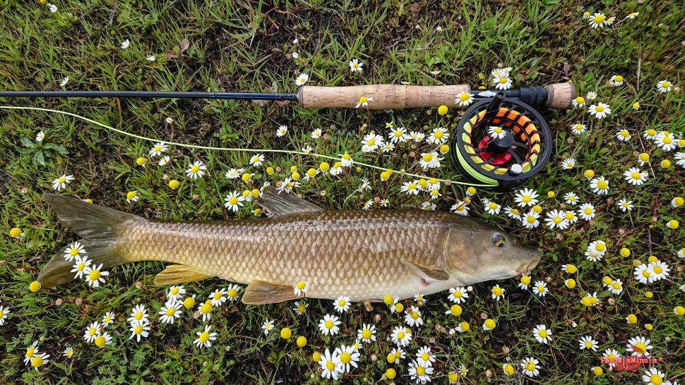 Estoy liberando el barbo cuando a mi derecha veo como otro se acerca hacia mi, como a tres metros de la orilla. Tal cual estoy, sin levantarme, le lanzo la mosca de nuevo, la ve y se queda un segundo observándola, pero esta vez la rechaza. Parece que es el sitio, además de verlos bien, están haciendo acto de presencia poco a poco.