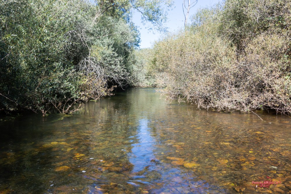 Seguí avanzando en una zona de corrientes donde el río describe una S con algún pozo que a buen seguro que me habría dado algún ejemplar decente, pero lo salté para buscar otras tablas para seguir pescando a seca y a pez visto preferiblemente. Más tarde confirmé que hice lo correcto pues a partir de aquí sólo encontré tablas con aguas más homogéneas en velocidad y sin obstáculos y me divertí de lo lindo.