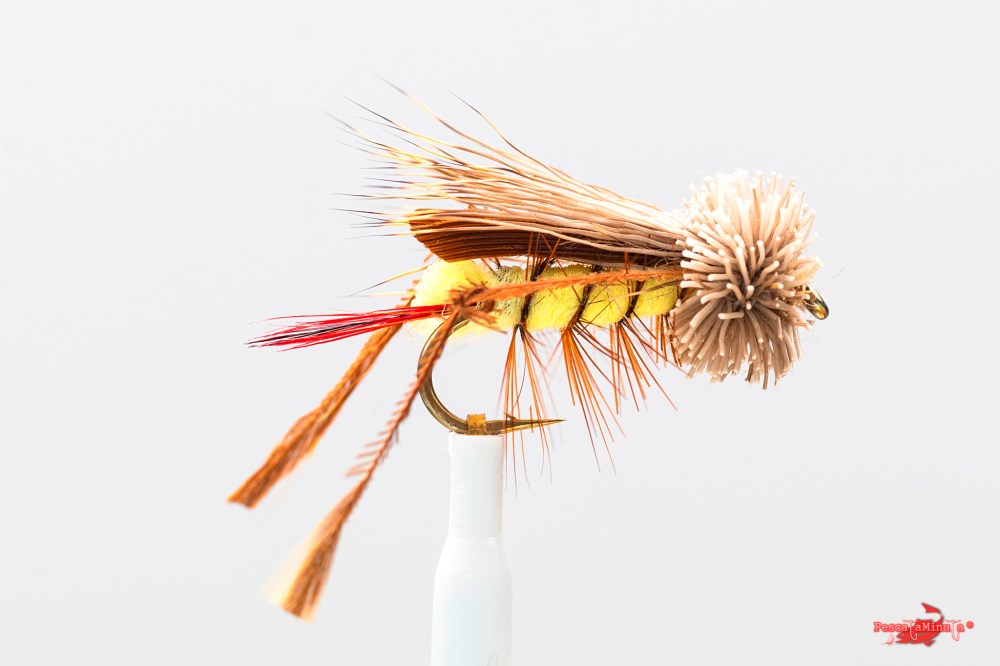 Cuerpo: Antrón poly yarn amarillo, palmer pluma cuello GDL marrón