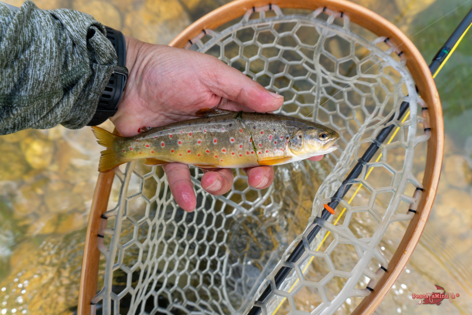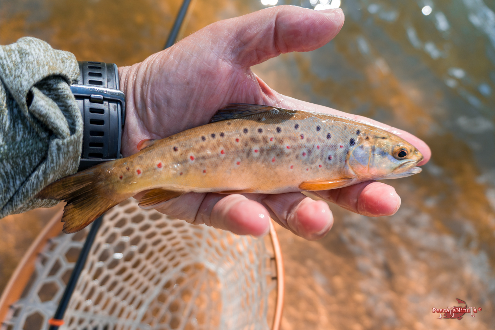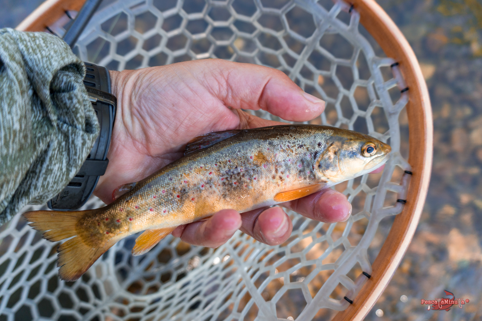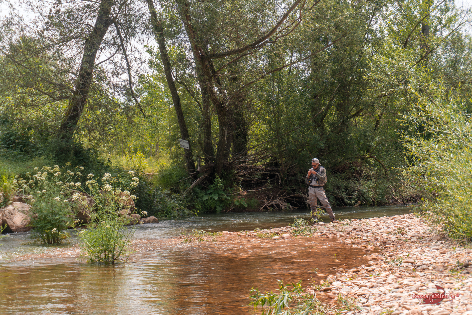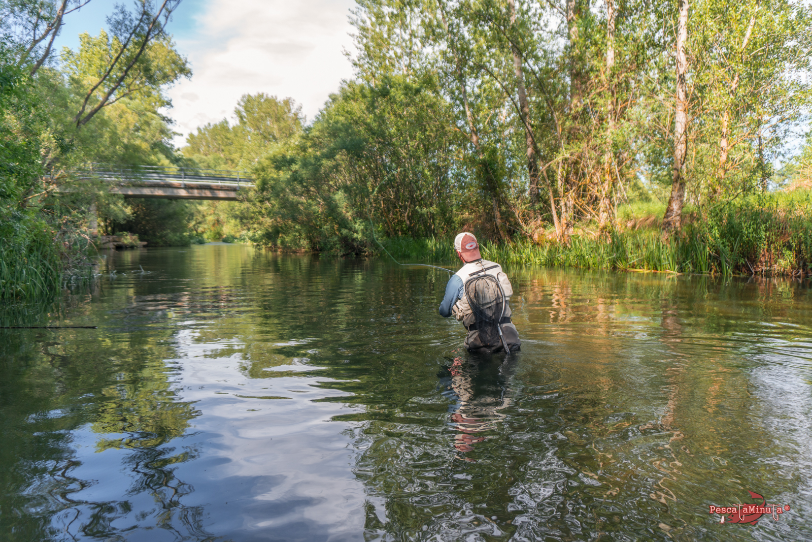 Pronto, en los primeros 20 metros y con los primeros lances las truchas hacen aparición, eran unas aguas rápidas y frías, poco profundas y pegadas a la orilla izquierda. Es primera hora y hay que tentarlas con ninfa, esperando en que habrá lugar para provocarlas con mosca seca a lo largo de la jornada y en las zonas más propicias para ello.