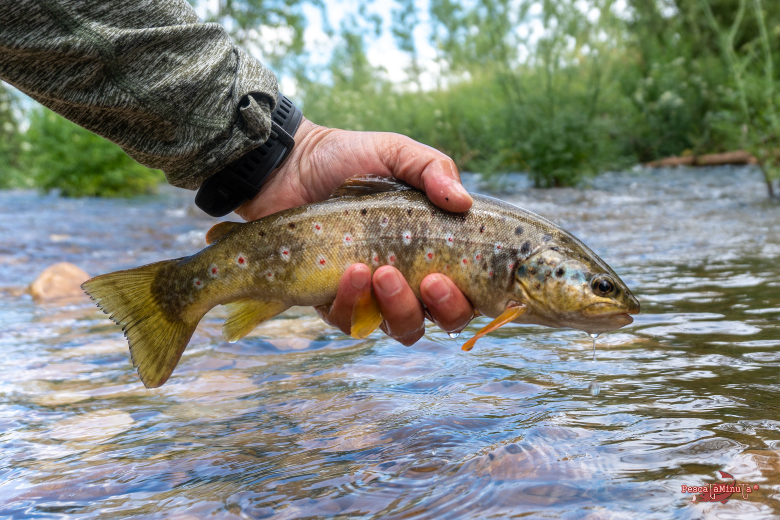 Para terminar unos cientos de metros más arriba, Santi logra capturar un buen ejemplar como broche final a una muy buena jornada de pesca. El balance de capturas ha sido muy alto y aunque la talla predominante ha sido pequeña-mediana la belleza de sus peces ha compensado el tamaño. Constatando que sigue siendo un río muy productivo. Por otro lado, es un coto muy cómodo de pescar por lo que creo que al menos para nosotros obtiene una altísima calificación y le hace muy recomendable.