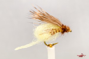 Este prototipo fue dando algunos ajustes con el paso del tiempo, las fibras de poli-win engarzado fue sustituyendo al poste del ala y un herl de pavo real se añadió al tórax para dar contraste y visibilidad con el claro abdomen. Originalmente fue bautizada como ‘Caddis LT’, siendo LT las iniciales de color marrón claro y el color del Poli Fly Rite utilizado.