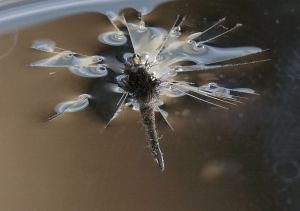 Algún tiempo después, Hans estaba limpiando un tímalo para cocinarlo y decidió abrirlo para ver lo que había estado comiendo. Descubrió en su interior, pupas de tricóptero muy grandes. Era obvio, tenía que intentar copiar estos insectos. Así que pensó que con un anzuelo grande, haciendo un abdomen curvado, que trabajase en la película superficial, debería atraer la atención de los peces. Bueno, ese era su pensamiento.